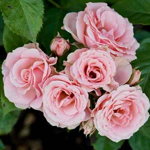 Главное достоинство сорта — его непрерывное и очень обильное цветение, длящееся с весны до поздней осени. На одном стебле одновременно распускается от 5 до 10 мелких, диаметром 3-6 сантиметров, густомахровых цветков. Их окраска представляет собой нежный, бледный розовый оттенок с мягкими сливочными нотками, создающий впечатление воздушного облака. Цветки собраны в плотные, пышные кисти, которые практически полностью покрывают компактный куст. Легкий, едва уловимый аромат дополняет изысканный образ этой классической розы, делая ее желанной гостьей в любом саду.